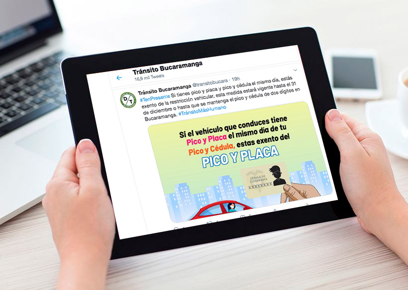Desde enero de 2018 hasta agosto de 2020 hice parte del equipo de la Oficina de Comunicación y Prensa de la Dirección de Tránsito de Bucaramanga. Mi función principal era la de crear contenido para publicar en las redes sociales de la entidad, elaborando piezas de tipo informativo y educativo.