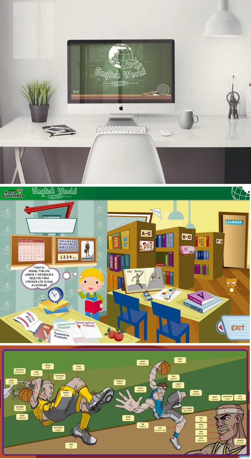 La Corporación Nueva Colombia, me pidió su asesoría para realizar el curso de inglés para niños English World. El soporte brindado se dió en la producción de las animaciones y material interactivo del curso.